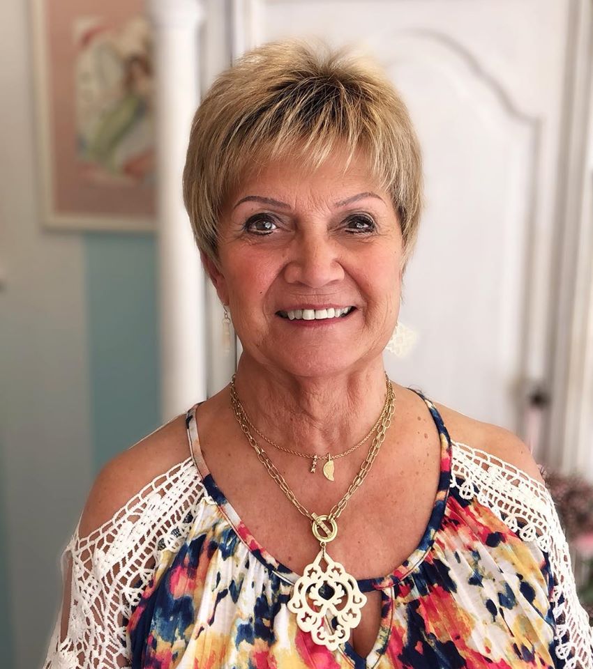 Logo of Angel Hair Wig Gallery featuring the name in a stylish font on a watercolor background with a rose.